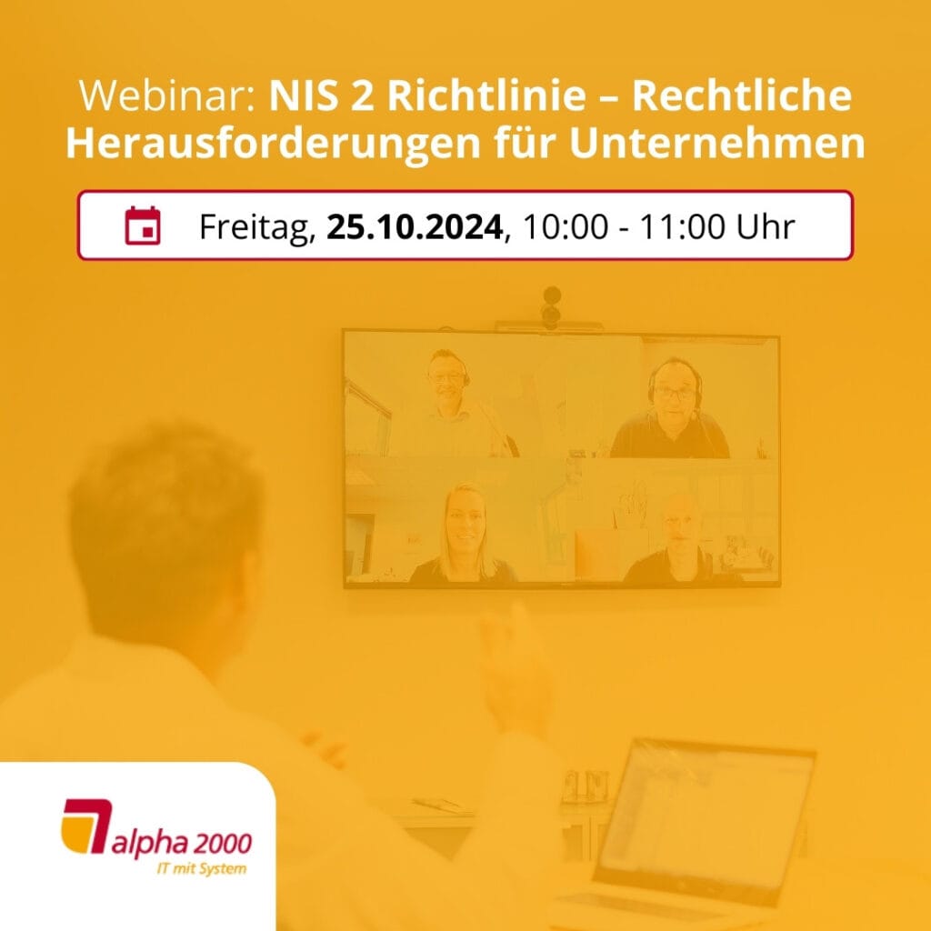 Die NIS 2 Richtlinie bringt weitreichende Änderungen und neue Anforderungen für die Cybersicherheit in Unternehmen mit sich. In unserem Webinar beleuchtet Herr Rasch, Fachanwalt für IT-Recht von der Anwaltskanzlei Linnemann Rechtsanwälte, die rechtlichen Grundlagen und Haftungsfragen für Sie als Geschäftsführer.